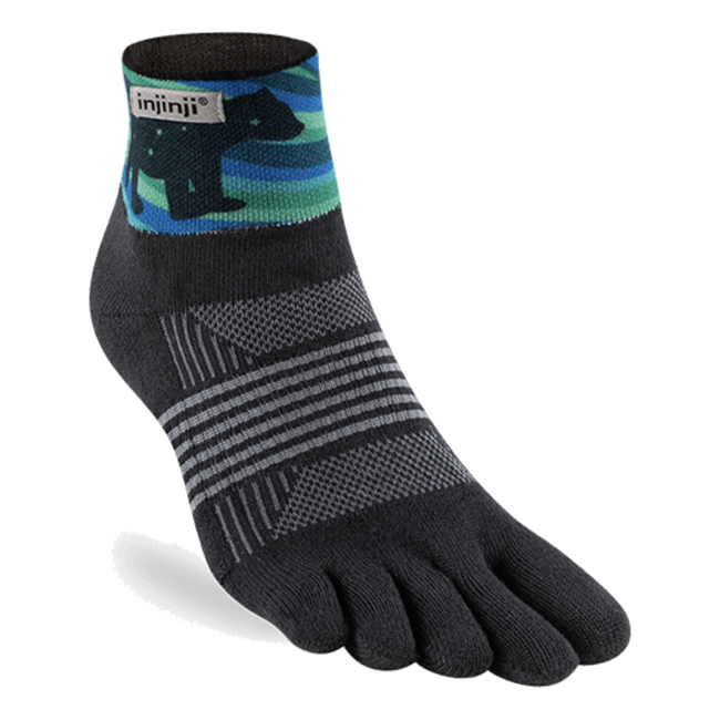 Built upon the Women’s Trail Midweight Mini-Crew silhouette, these cushioned running toesocks prevent blisters and utilize COOLMAX® EcoMade fibers to wick away moisture. The double cuff seals out trail debris. A narrower fit distinguishes these from our Men’s socks.
