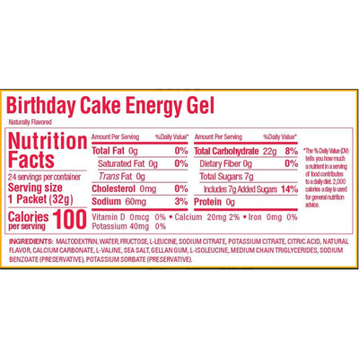 Birthday Cake gives everyone permission to indulge and celebrate out on the trails. This flavor is delicious, indulgent, and takes us back to our childhood days of sneaking a swoop of cake batter without getting caught by mom or dad. Created to celebrate GU's 25th birthday, here’s to 25 more!