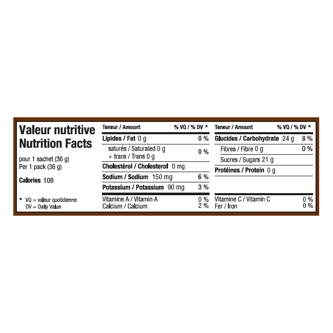 Maple energy gel is a 100% natural source of energy. These minerals play an important role in the muscular contraction of the athlete. Its intensity and aroma offer a unique flavor that combines pleasure and performance.