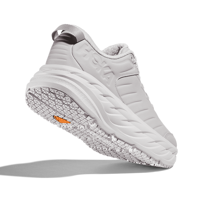 The Bondi SR takes the most cushioned shoe in the HOKA road-shoe lineup and reworks the silhouette to handle the demands of daily life. Updated with water-resistant leather, a slip-resistant outsole and EVA midsole to ensure all-day cushion, this workplace warrior features an ultra-grippy, full ground contact rubber that stands up to the demands of the service industry and medical field alike.