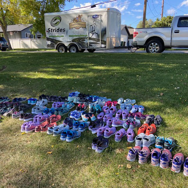 Thank you to the many Strides customers who have generously donated their used running shoes over the past 13 years. An estimated 500 pairs of running shoes per year are donated to CUPS (Calgary Urban Projects Society) and the Mustard Seed. As well, many pairs of gently worn shoes are waiting to be shipped to South Sudan through a local charity, Humantiy’s Promise. Used shoe donations can be dropped off at all three Strides locations.