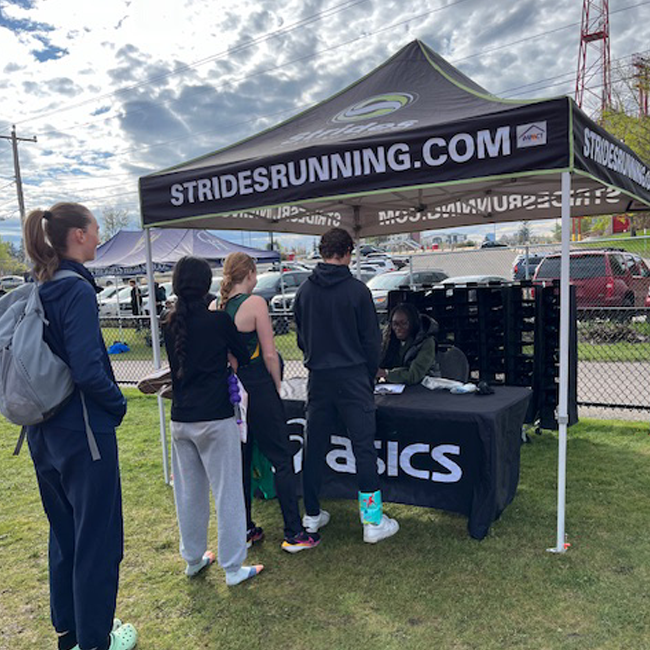 Through our continued sponsorship of the Calgary High School Cross-country Series (each September and October), Strides donates 10 pairs of track spikes to the local High School that wins the Community Involvement Award (given to the school which has the largest increase in student participation year over year). To date, there have been five different high schools that have won this award.