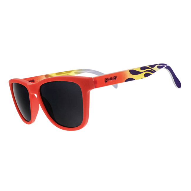 Red OG frames featuring a red-hot flame design & black non-reflective lenses. These sunglasses are pure torque. (We’re not sure they’re street-legal.) Get in, sit down, hang on, & shut up….then Cue the Chase Scene. These ain’t your granny’s rat rod!